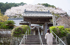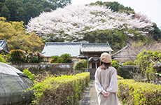 徳島県阿南市山口町には、春になると山一面が桜で覆われる壮大な花見スポットがあります。寺院の美しい門構えと満開の桜が織りなす風景は、訪れる人々を圧倒するほどの迫力。境内から見上げる桜の海は、心を奪われる美しさです。